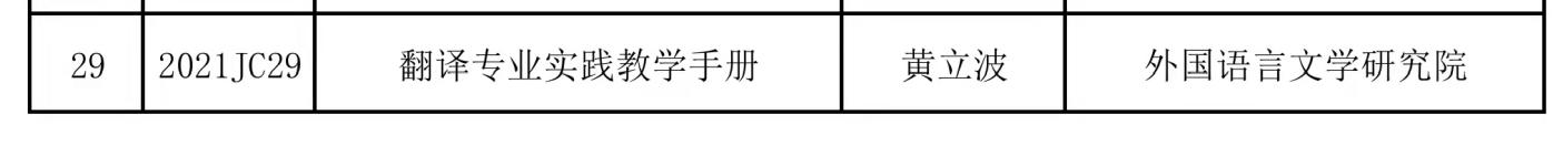 近日,我校公布了2021年度教材立项专项资助项目结果,由开云体育 黄立波教授所申报的课题《翻译专业实践教学手册》获批立项。