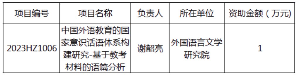 2023年5月,陕西省社会科学界联合会公布了2023年度国际传播能力建设重点研究项目立项名单,开云体育 谢韶亮博士课题《中国外语教育的国家意识话语体系构建研究——基于教考材料的语篇分析》获批立项。