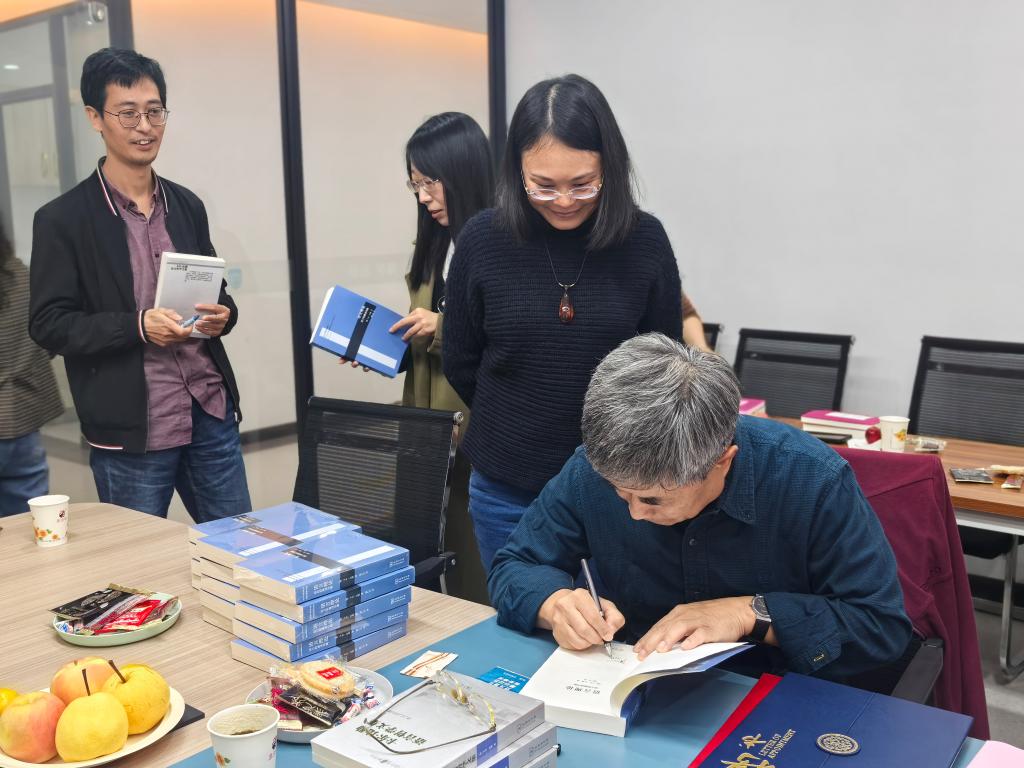仪式尾声,温仁百教授回顾了自己在求学及西外工作、生活在教育道路上的点点滴滴,表达了对教育事业的热爱与执着,同时温仁百教授将自己出版的著作赠与了与会的老师们。