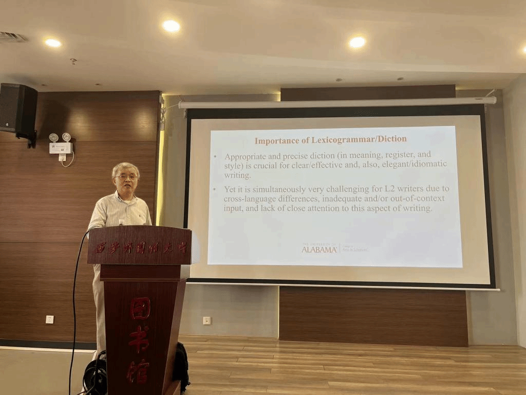 6月5日下午,美国阿拉巴马大学英语系应用语言学专业刘迪麟教授应邀于我校长安校区图书馆六楼报告厅为校内师生作了题为“Using corpora to enhance appropriate and precise lexicogrammar use in academic writing” 的学术讲座。此次讲座由开云体育官网